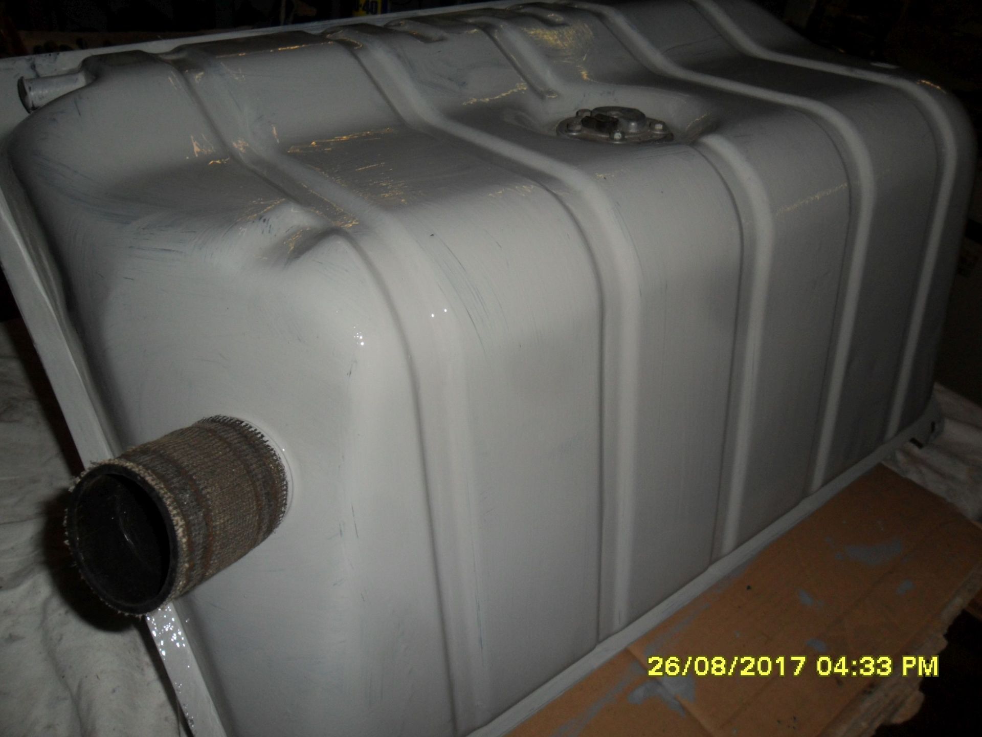Der Benzintank musste noch aufgearbeitet werden. Innen war er seinerzeit vom Vorbesitzer mit Petroleum teilgefüllt worden und dadurch innen kaum verrostet.
