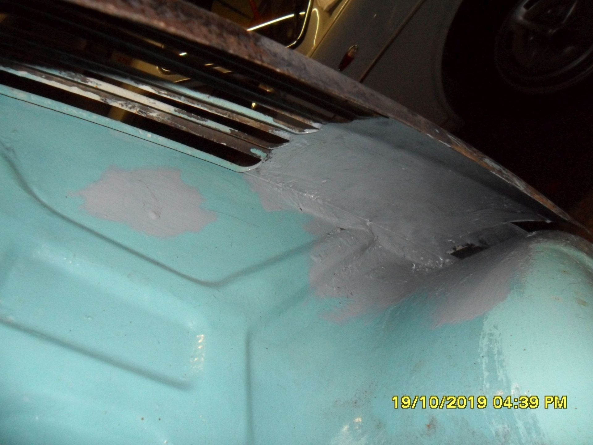 Darüber hinaus haben wir uns für eine Neulackierung der äußeren Karosserieteile entschieden, weil doch die Außenfarbe sehr ausgebleicht ist, vermutlich durch langes Stehen im Außenbereich und ohne Lackpflege. Die Neulackierung wird aber erst im Jahr 2020 erfolgen, weil wir noch einige Vorarbeiten erledigen müssen.