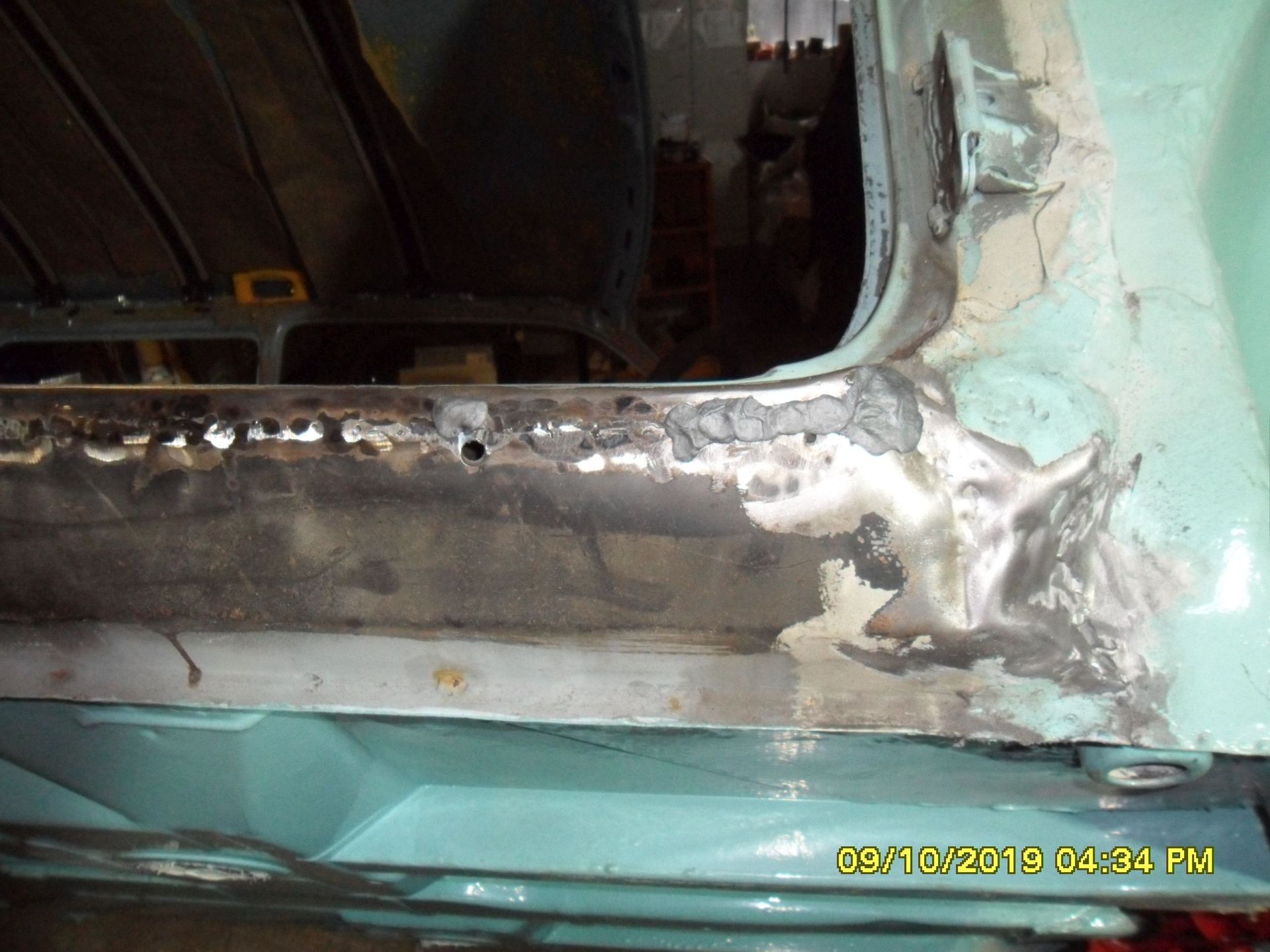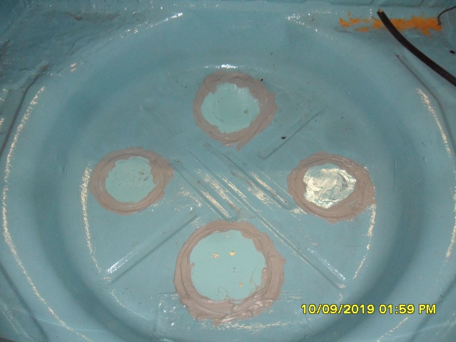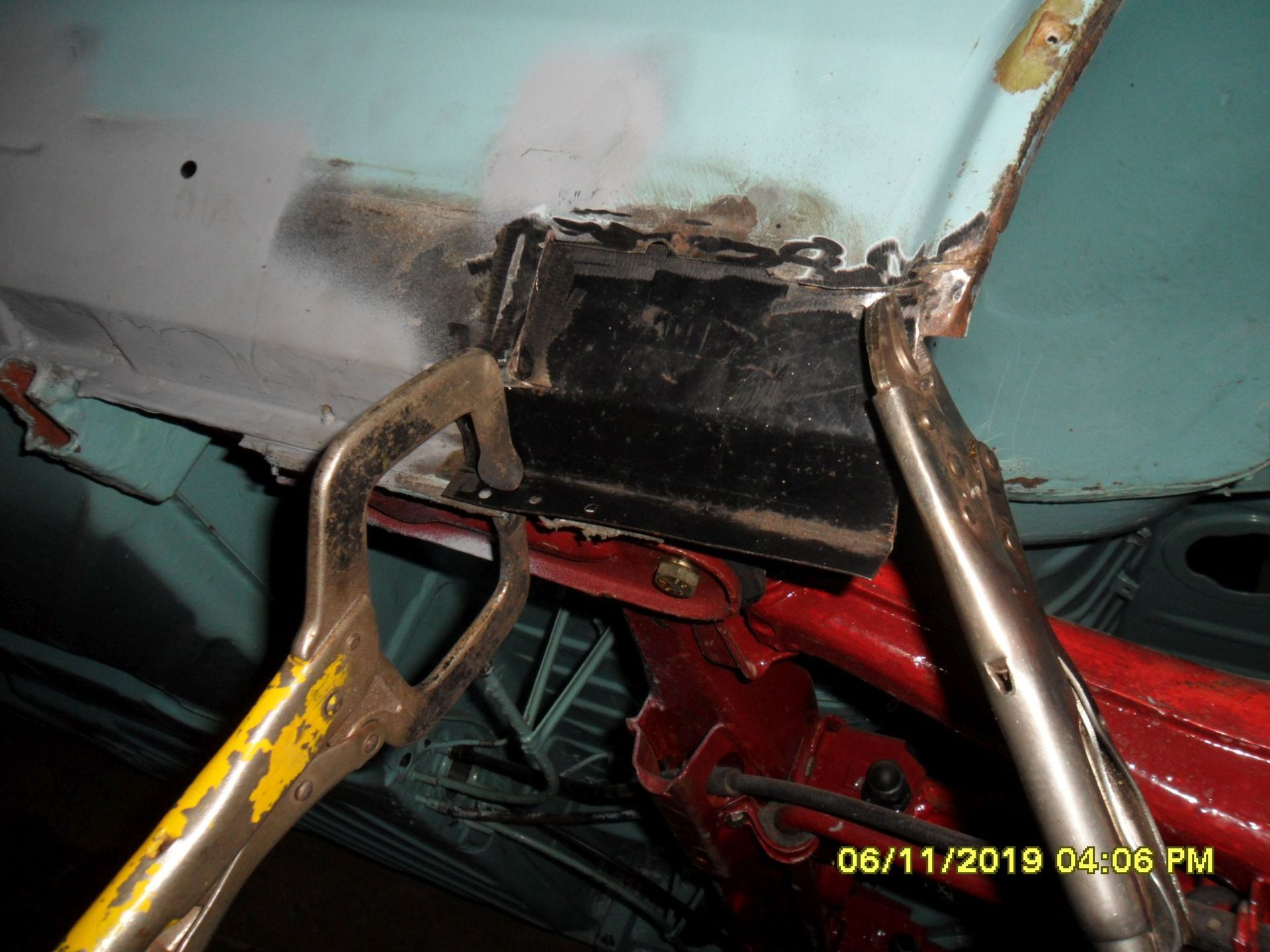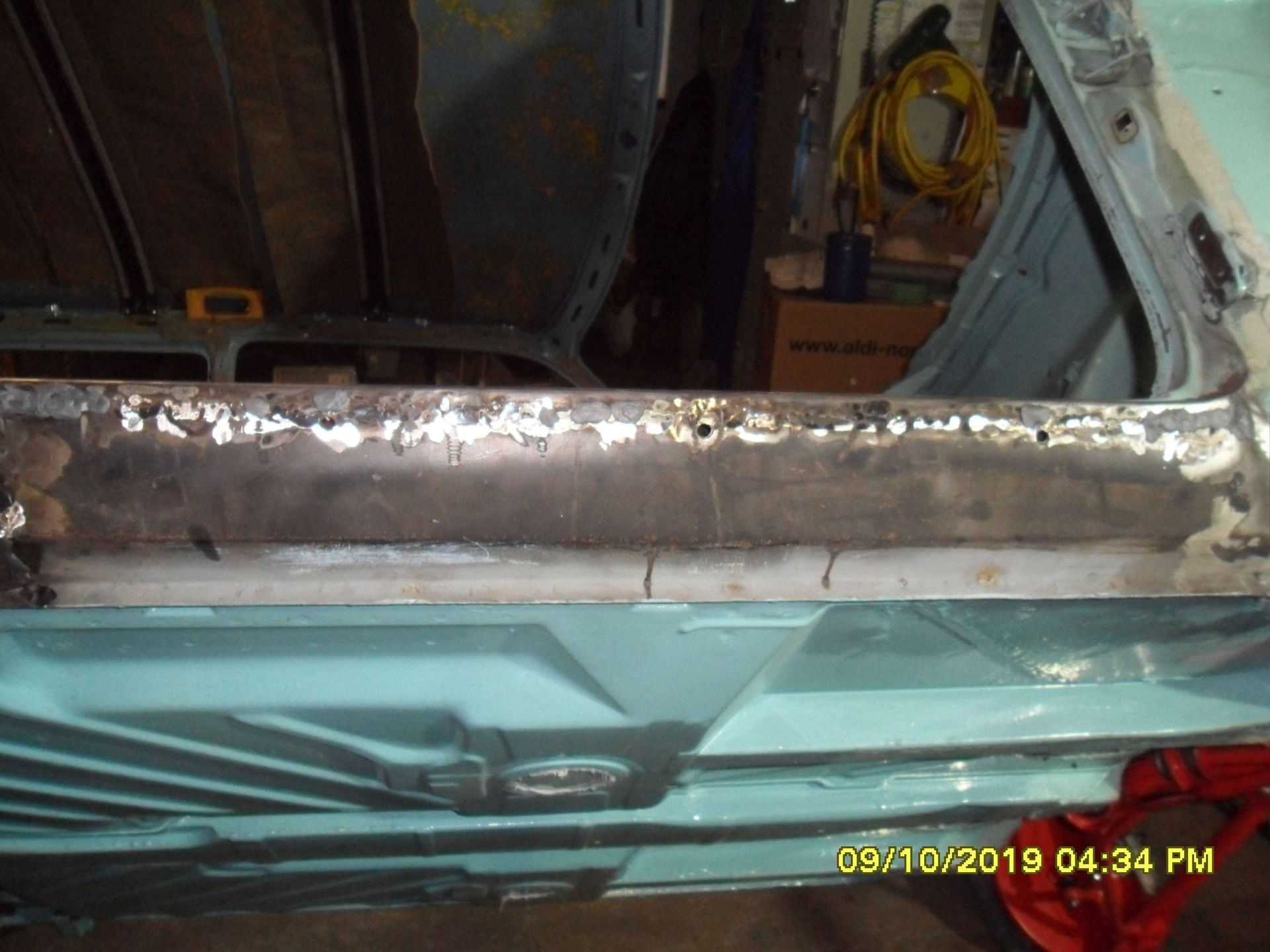 So mussten das Schweller Blech rechts und die Blechverschlüsse der Hohlraumöffnungen links noch nachgeschweißt werden. Der Frischluftkasten vorn erhielt innen eine Epoxygrundierung und ist durch die bewährten Öffnungen im vorderen Kofferraum auch von dort vom Lackierer zu erreichen. Durch diese zusätzlichen Öffnungen ist auch die Scheibenwaschdüse immer wieder von innen (Kofferraum) zu erreichen und man muss nicht Gebläse und Co. ausbauen.