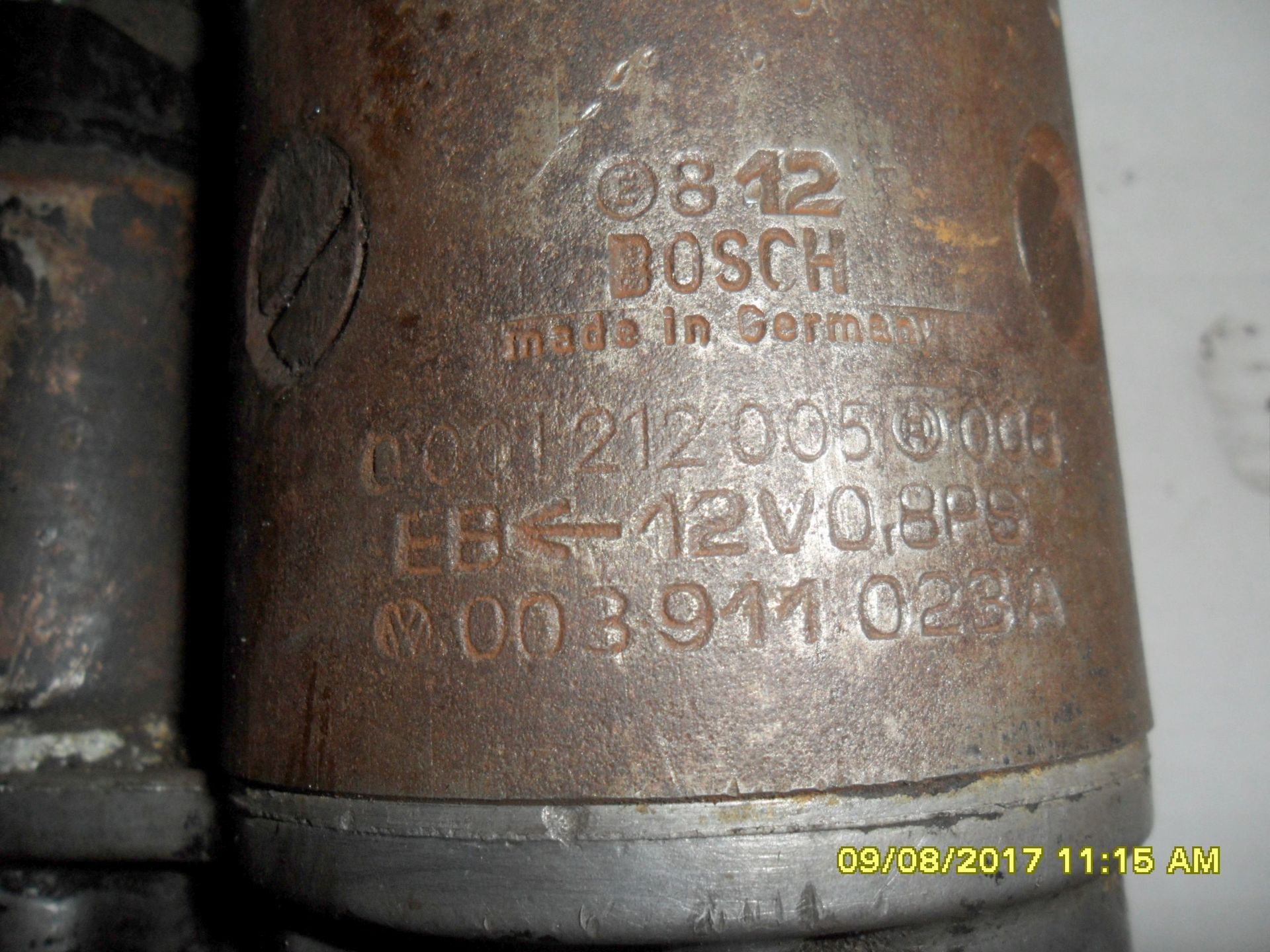 Den Anlasser VW-Teile-Nr. 003 911 023 A (für Automatikgetriebe, Bosch-Nr. 0 001 212 005 - 006 EB - 12 Volt - 0,8 PS) von unserer Limousine haben wir getauscht gegen einen neuen. Die Reparatur in Eigenregie oder bei einer Bosch-Werkstatt wäre teurer gekommen. Also Tausch "Alt gegen Neu" und 138,30 Euro bezahlt. Dafür lohnt es sich nicht die rostigen Teile vom Altteil zu strahlen, zu lackieren und das Innenleben zu reparieren.