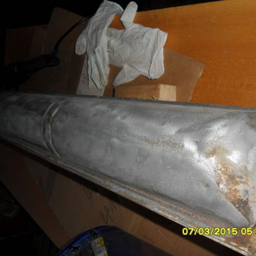 So kommt also wieder der alte Leistritz zum Einsatz, der bereits einige Jahre unter meinem früheren VW 412 LE Variant seinen Dienst verrichtet hat. Bevor der Auspuff an den Motor geschraubt wird, haben wir ihn gründlich überarbeitet.