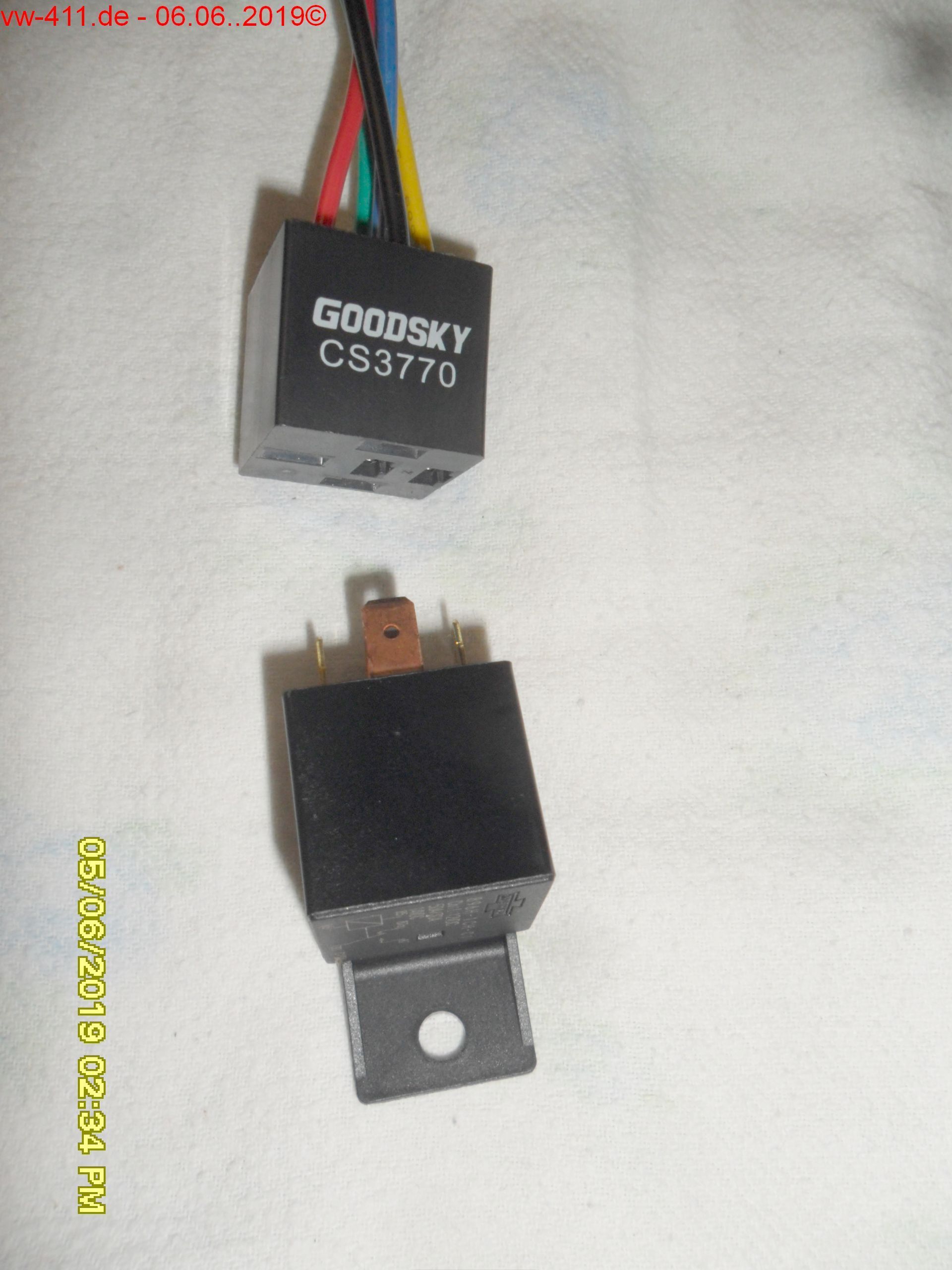 Das Zusatzrelais habe ich im Elektronikhandel (hier Conrad) zusammen mit dem Steckkontakt als Einheit erworben. Diese Relais lassen sich überall im Fahrzeug einsetzen.