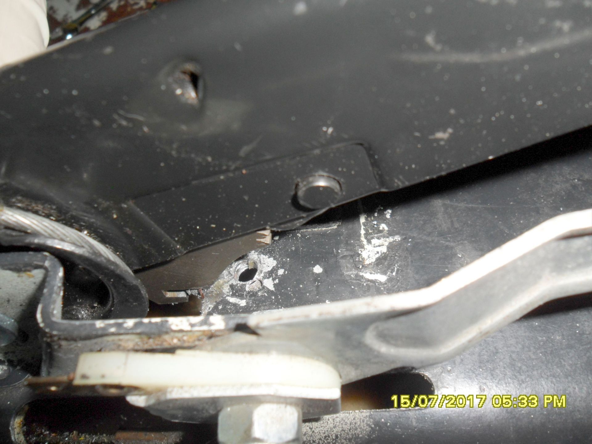 Nach näherem Hinsehen stellte sich heraus, dass die Zahnbogenkerbung unten aus der Haltenase (Bilder 1 und 2) vom Mitteltunnelblech heraus gerutscht war. Aber warum?