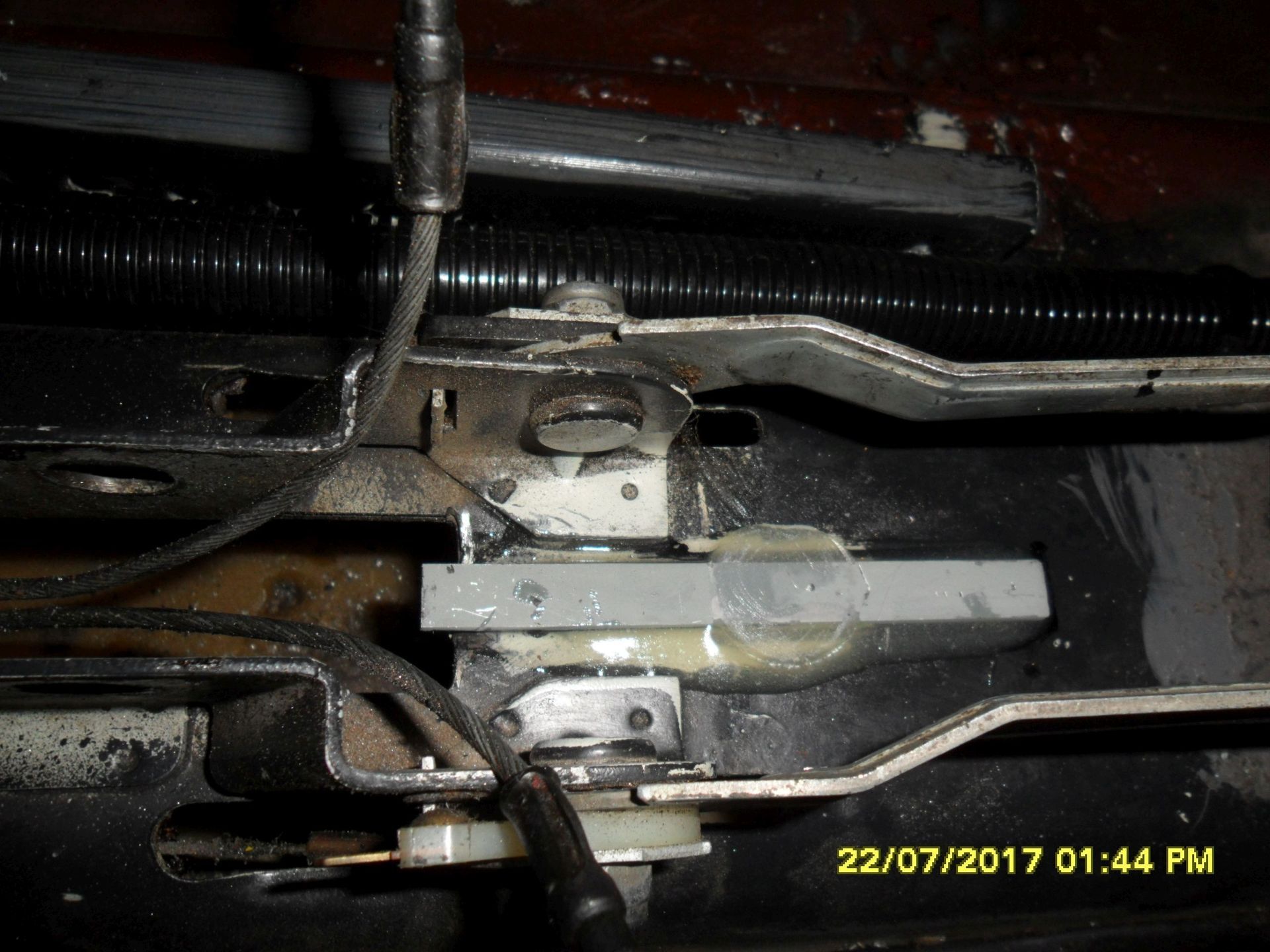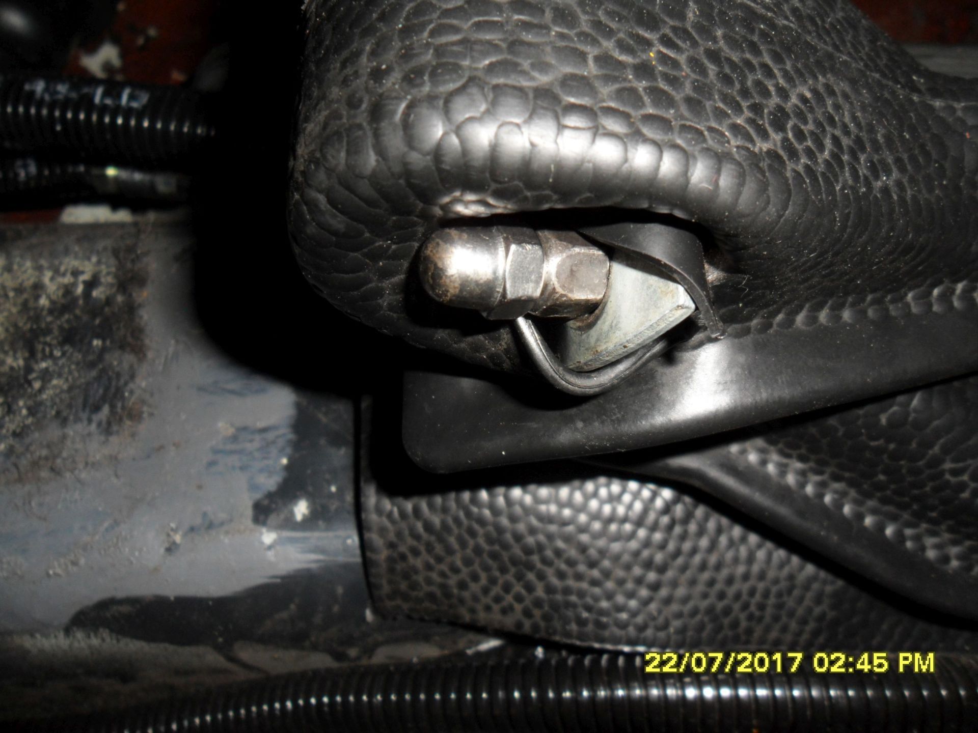 Nach einiger Überlegung, wie ich dieses Problem lösen kann, habe ich mich entschlossen die alte Haltenase durch ein aufgeklebtes Flachstahlstück zu ersetzen. Ein Blechstück ein- oder Aufschweißen wäre sicher besser, kam aber aufgrund evtl. Verpuffungs- und Brandgefahr wegen fettiger Hohlraumversiegelung (Mike Sanders) nicht in Frage.