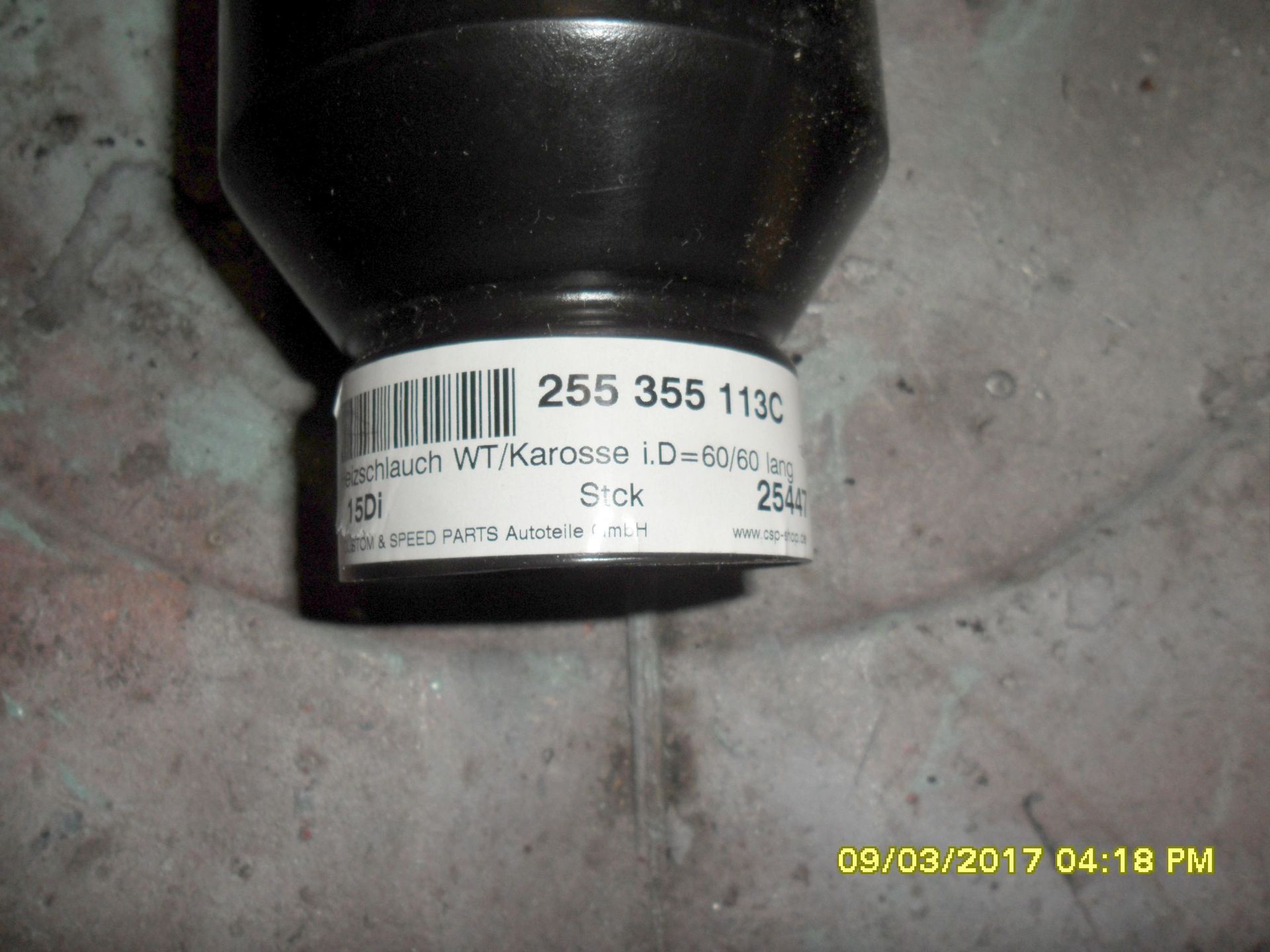 Leider gibt es offensichtlich nur einen Hersteller dieser „Warmluftschläuche“, der alle Zubehörhändler beliefert. Es gibt aber verschiedene Längen. Ich habe den Schlauch mit einer Länge von 430 mm (113.255.355 C - Ø60/60mm) genommen, weil dieser am besten zwischen die Heizungsrohre unserer VW 411 Limo passt. Diese Schläuche sind leider ihr teures Geld (ca. 34,00 – 38,00 Euro/Stück) nicht wert, weil der Schlauch so nicht zu gebrauchen ist, denn er lässt fast keine Heizungsluft durch (siehe Bilderserie).