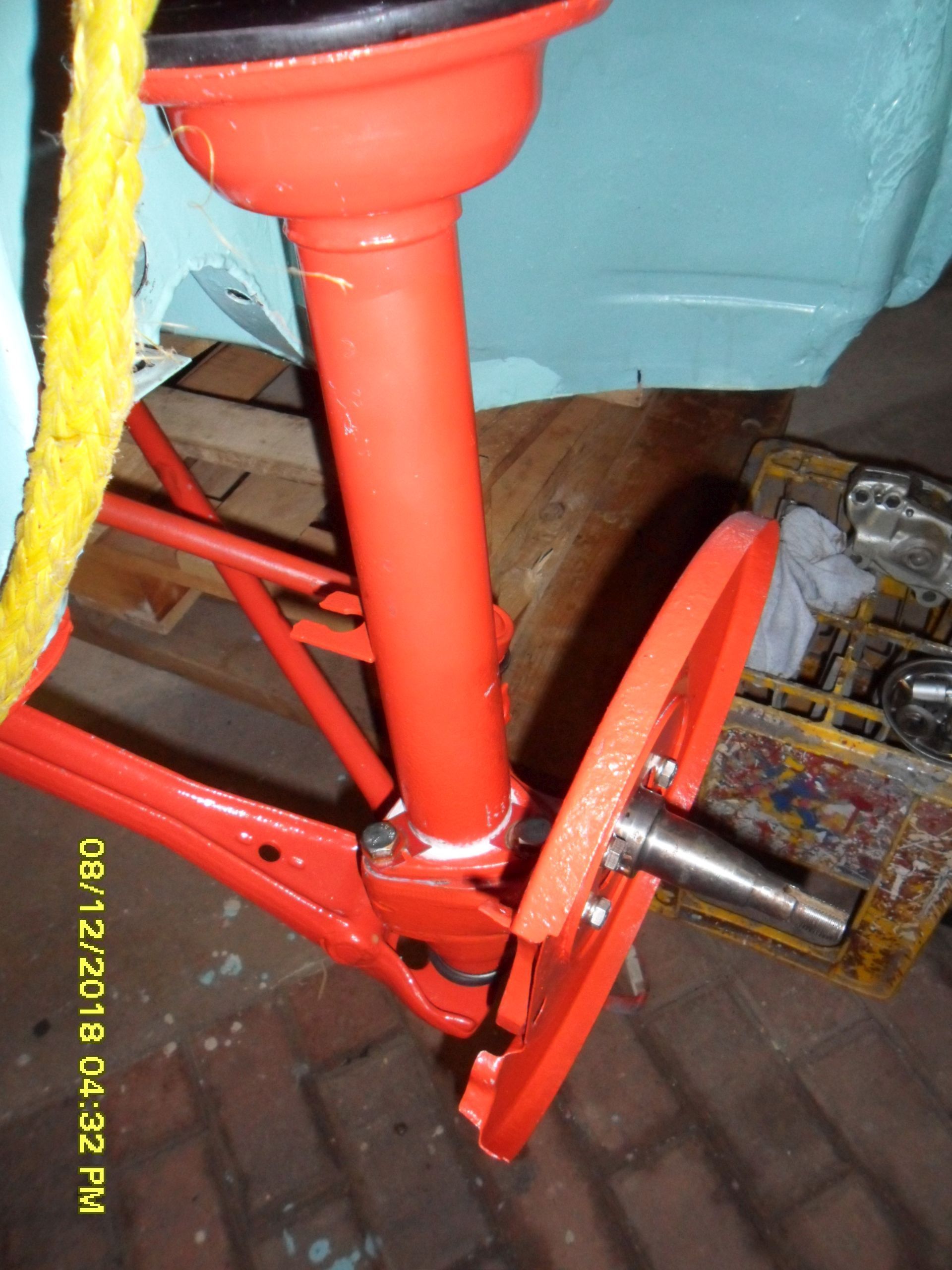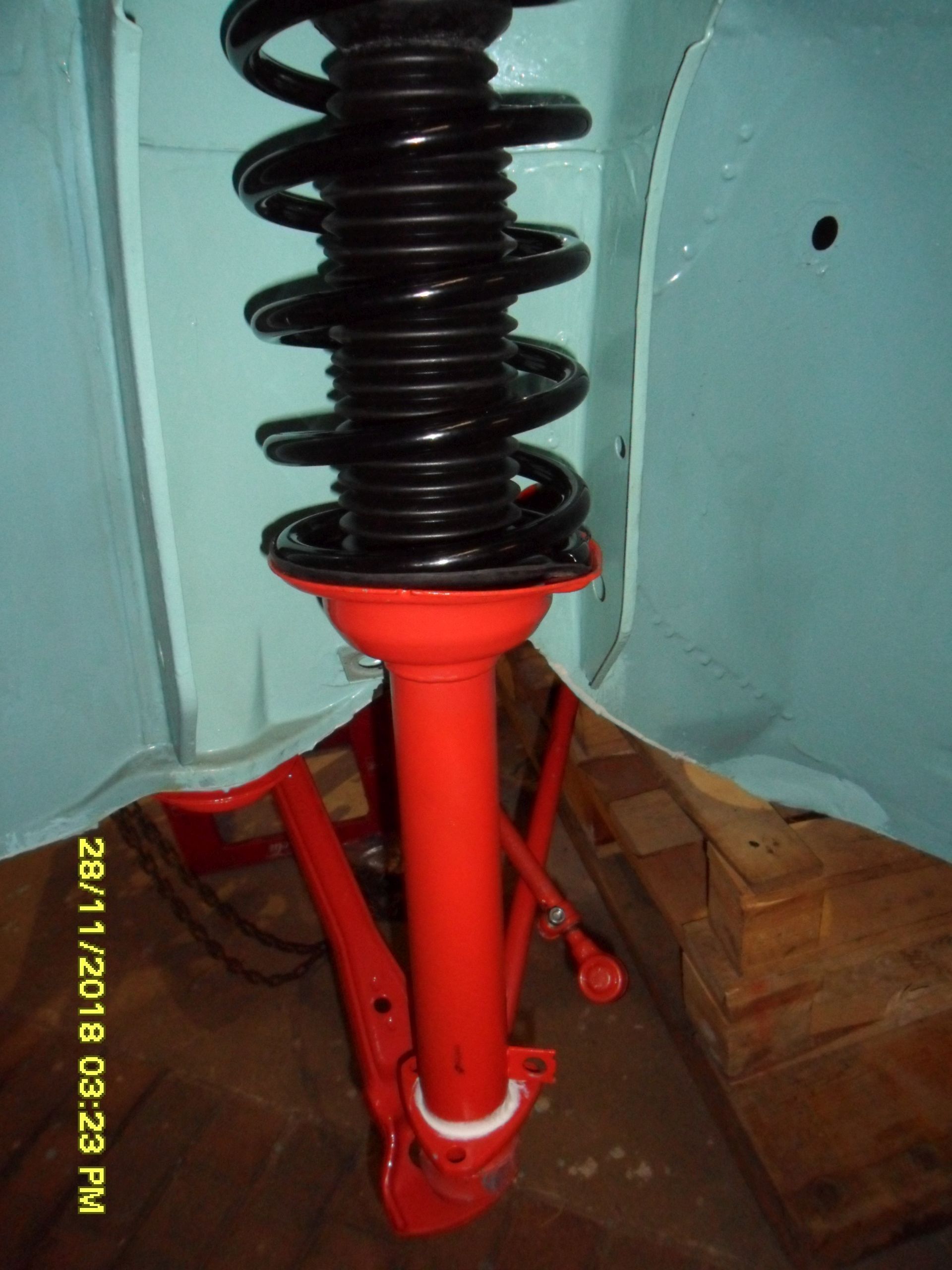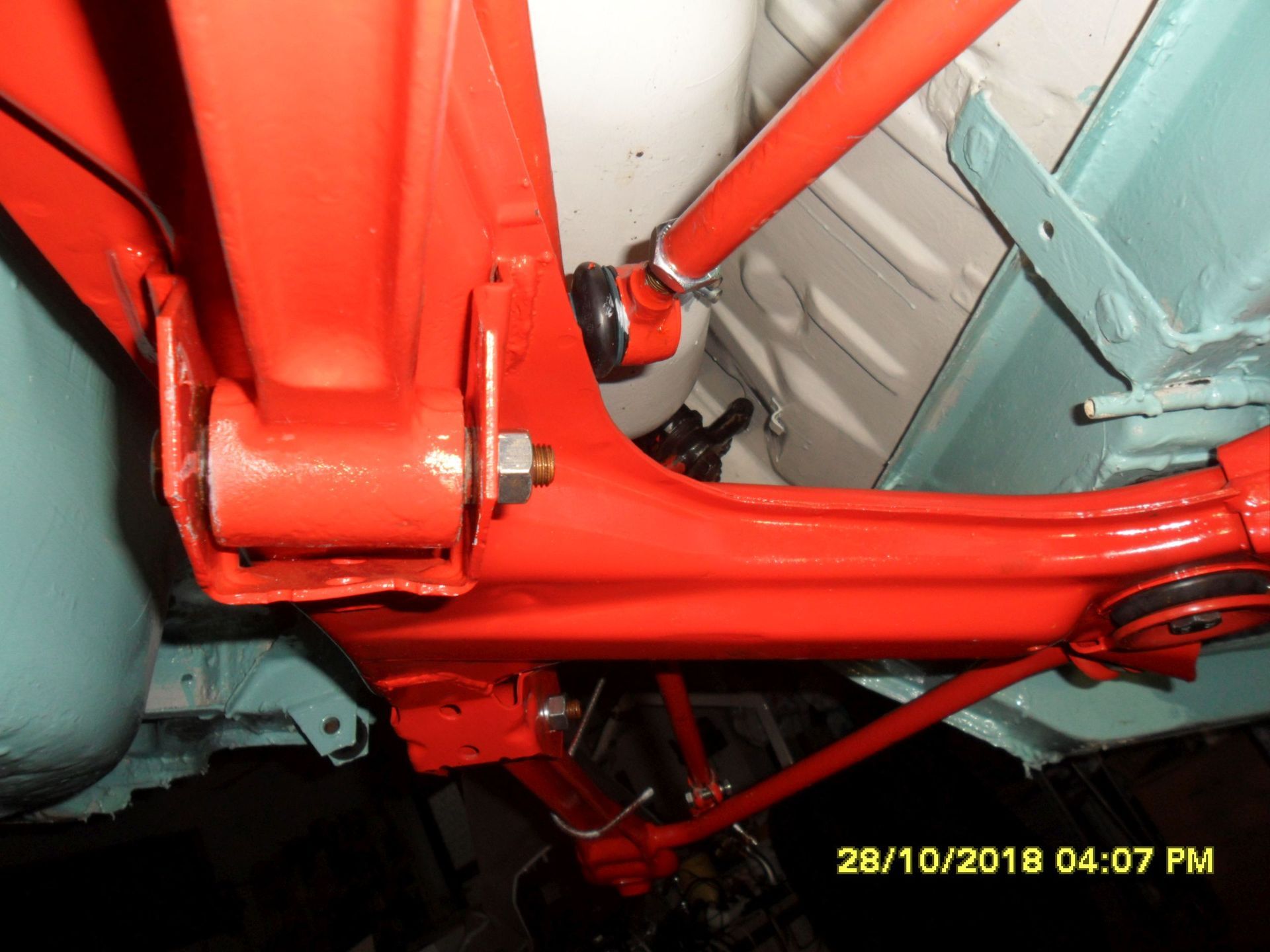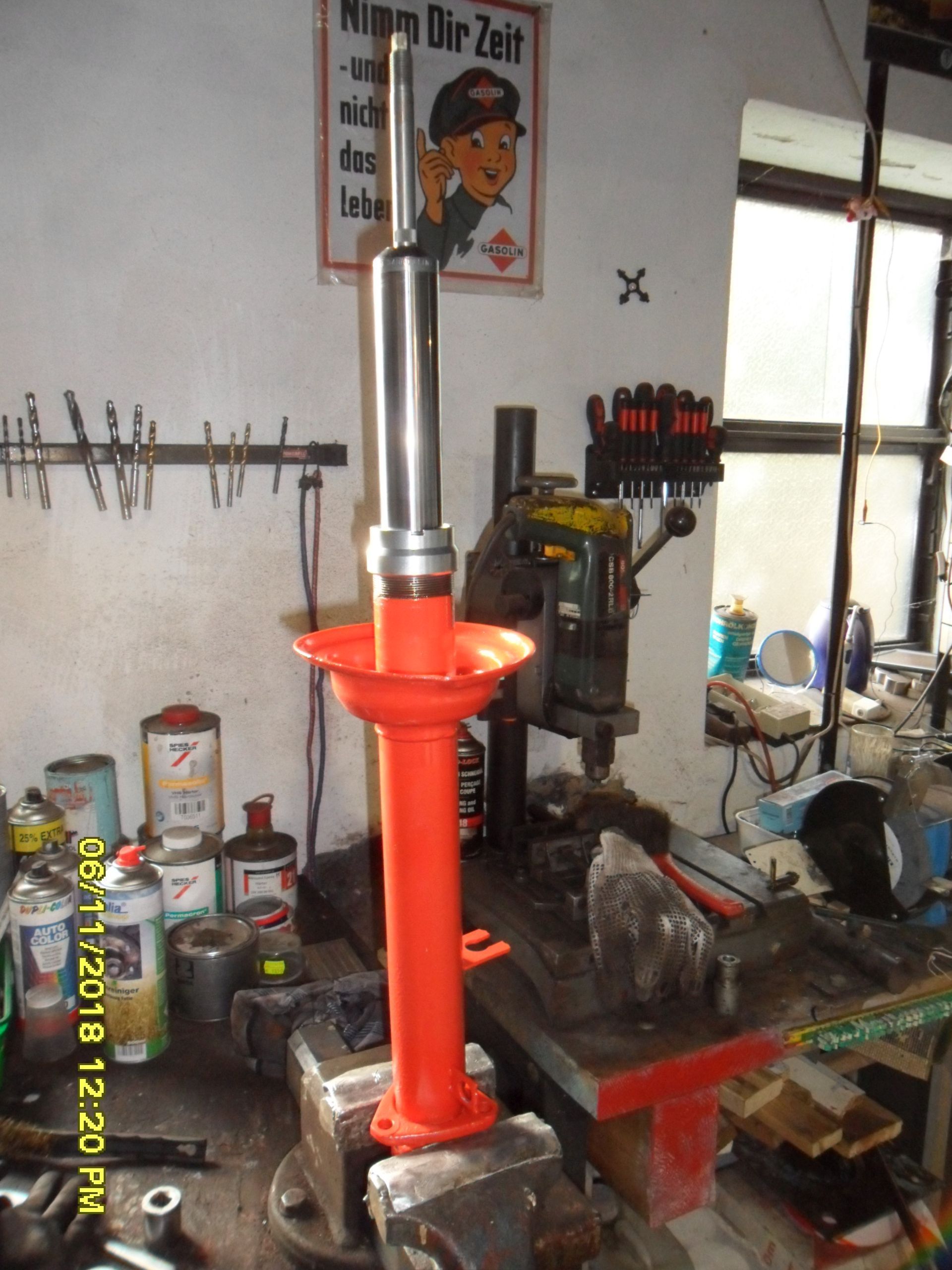 Die Querlenker mussten nur noch in RAL 3000 lackiert werden (vorher gestrahlt, sprühverzinkt und grundiert).