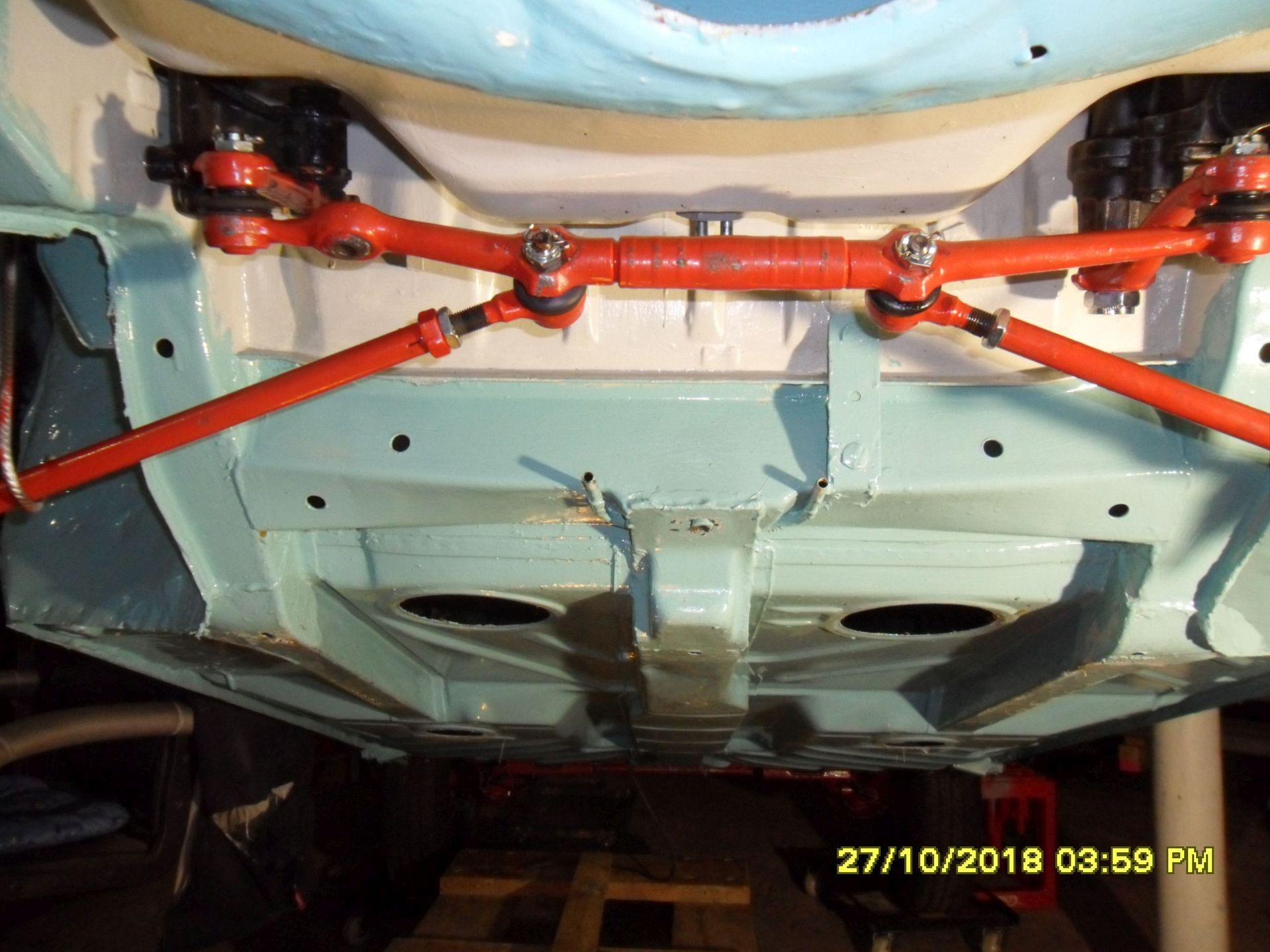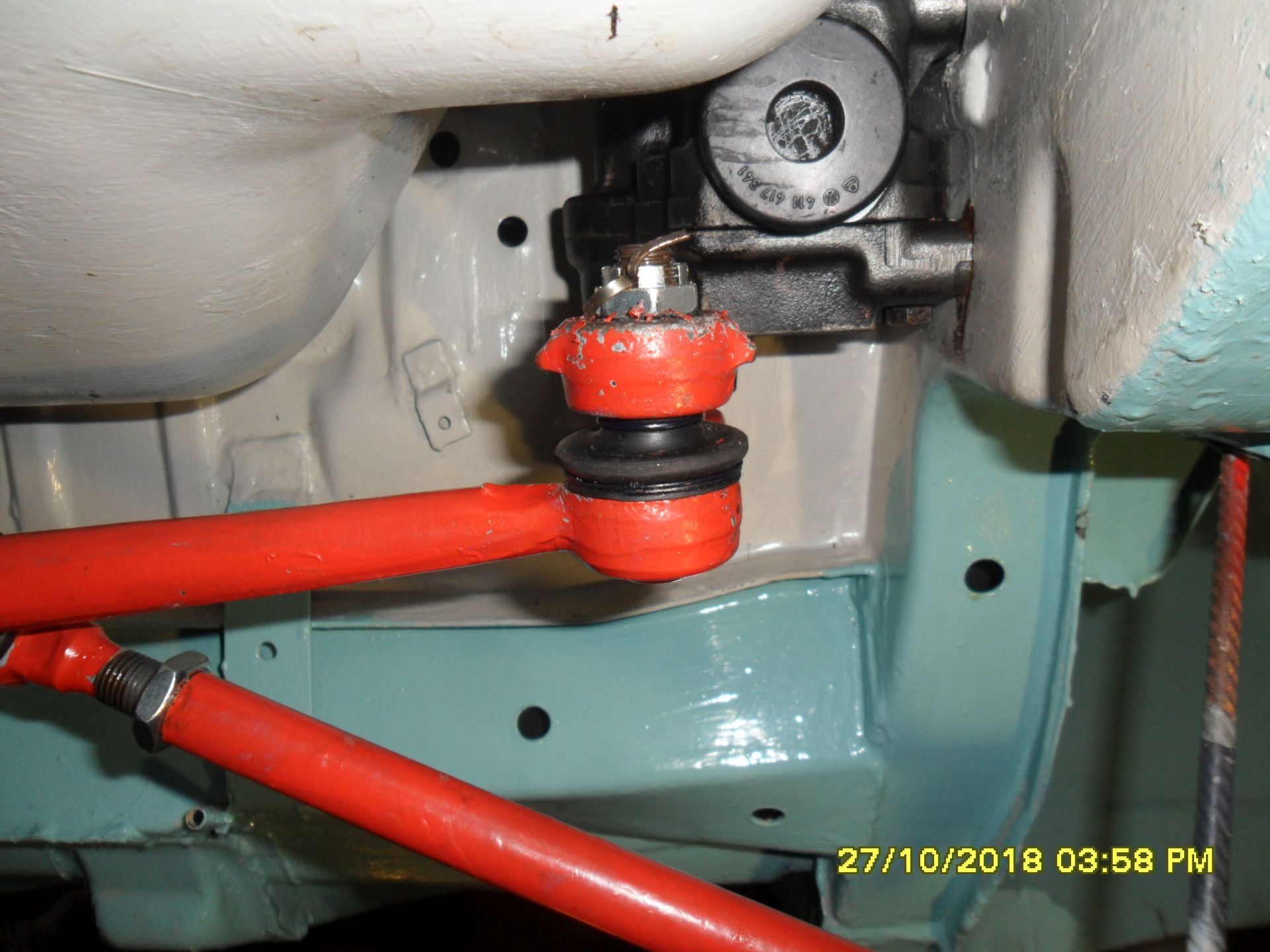 Auch das Lenkgestänge wurde bereits vorher aufgearbeitet und nun eingebaut. Der hier noch zu sehende Boge Lenkungsdämpfer wird später durch einen Bilstein Lenkungsdämpfer ersetzt.