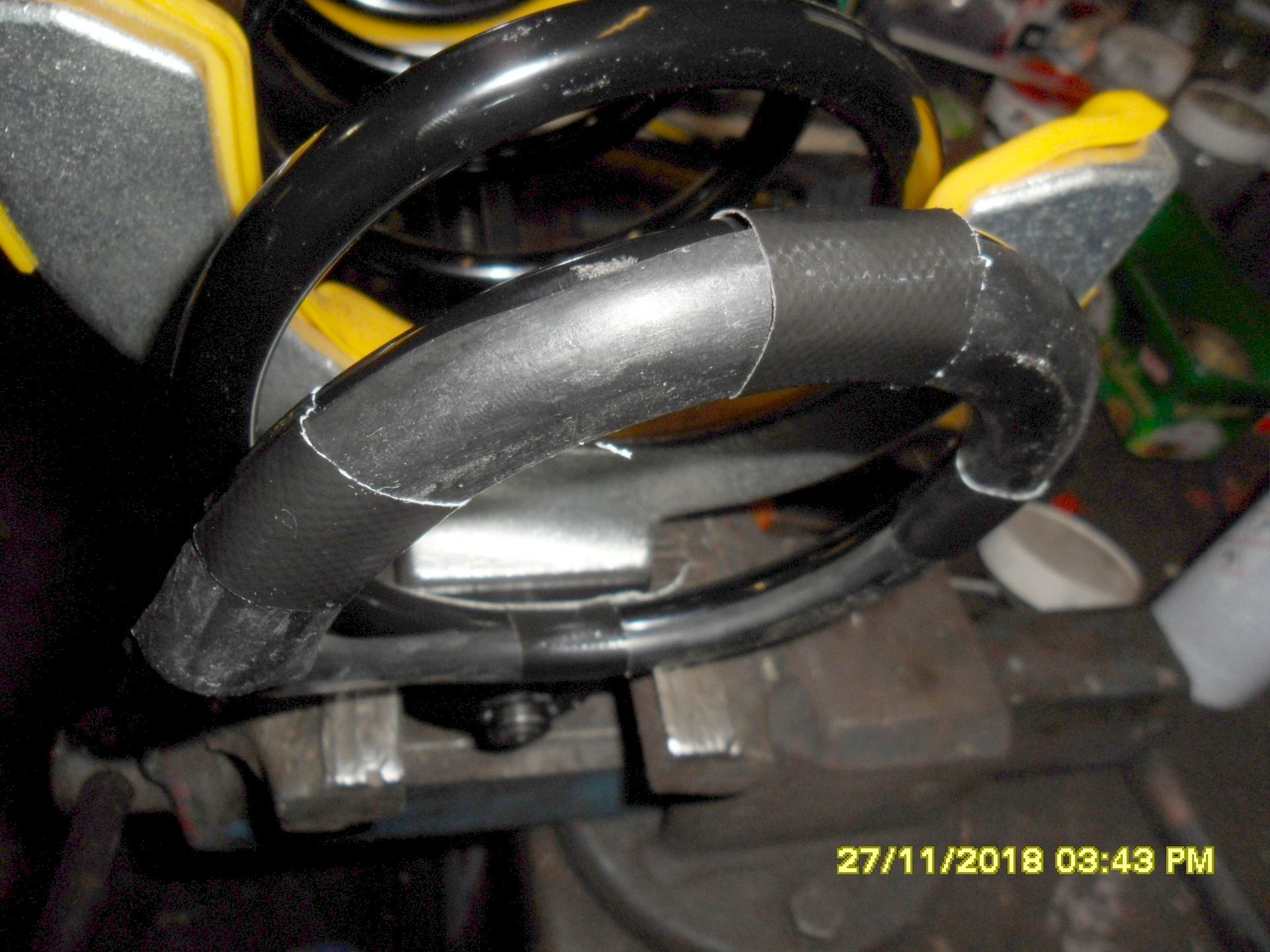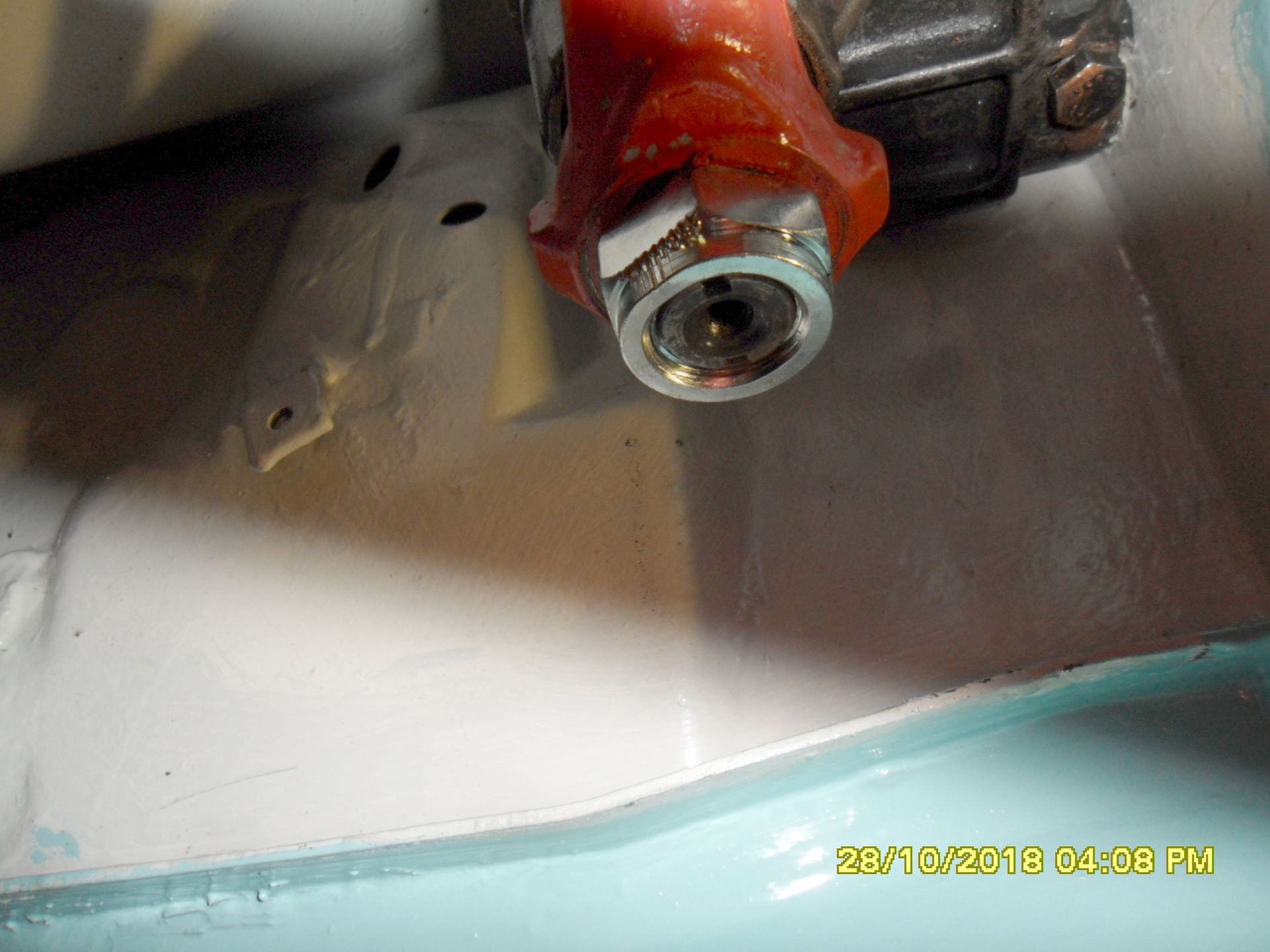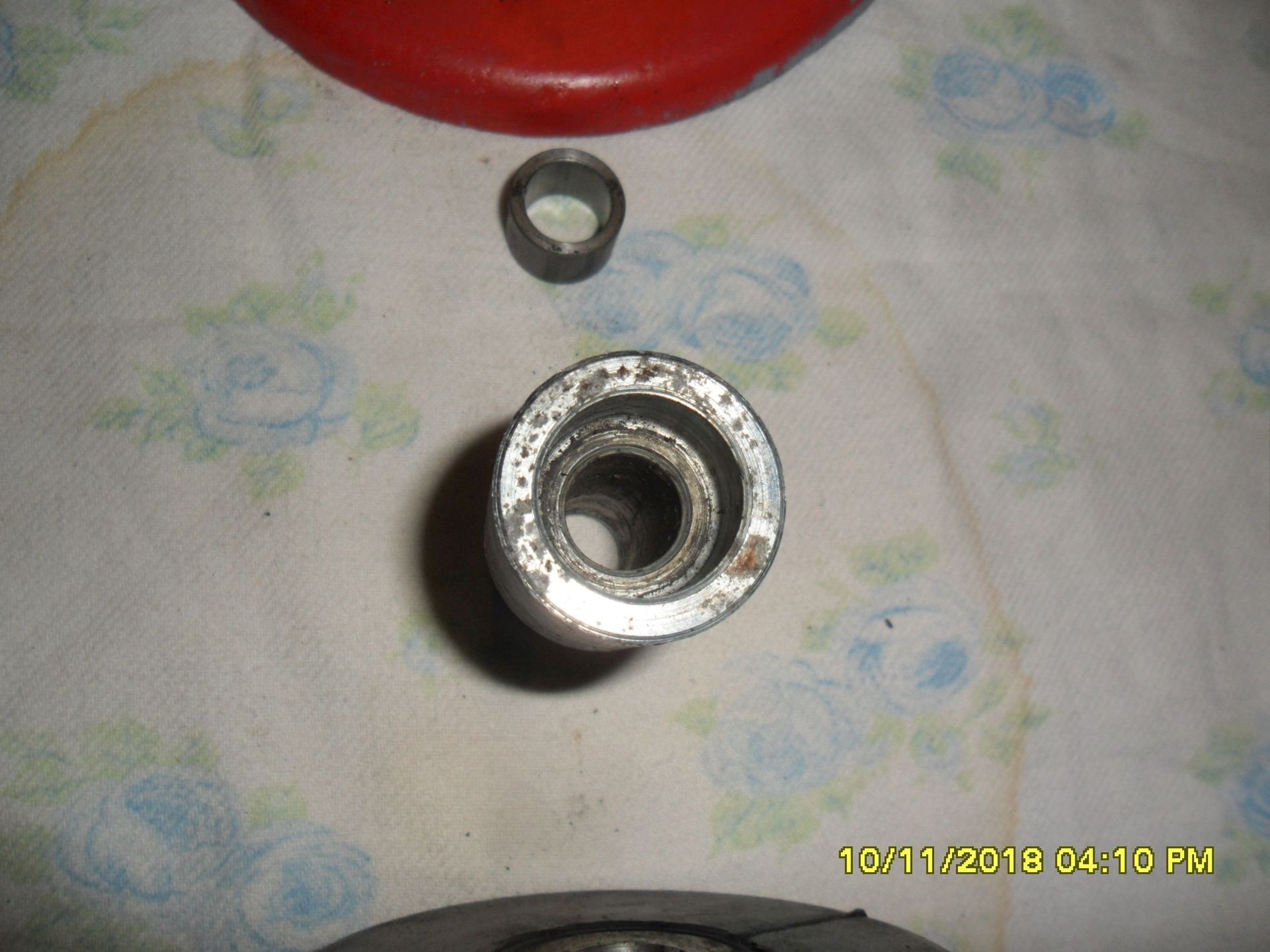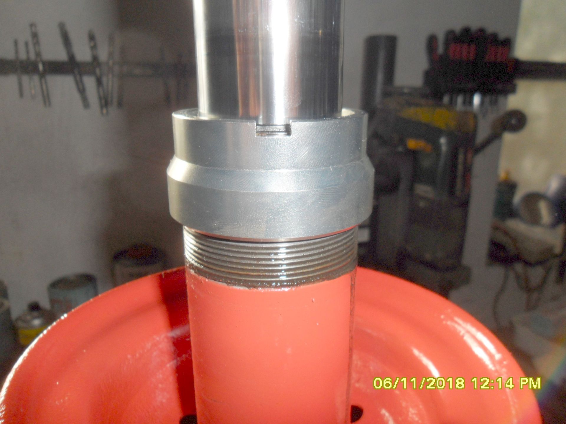 Der in den nachfolgenden Bildern verwendete Schmiernippel wird nur bei der späteren Demontage des Führungsgelenkes benötigt. Über den Schmiernippel lässt sich Fett in den Hohlraum spritzen und durch den Überdruck löst sich das Gelenk leichter vom Federbein. Diese Bohrung wird nach dem Federbein-Zusammenbau mit einer kleinen Sechskantschraube M 6 x 10 mm verschlossen.
